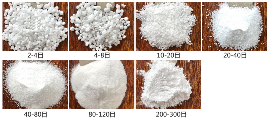 幹法生產石英砂,主要設備有石英砂振動篩、磕石機、粉碎機等。其工藝流程為石英石礦料經過磕石機加工成較小石料,石料再經過粉碎機加工砂粒,然後經過振動篩篩分,在篩分過程中利用磁鐵棒和排磁鐵除鐵,然後分裝完畢入庫。