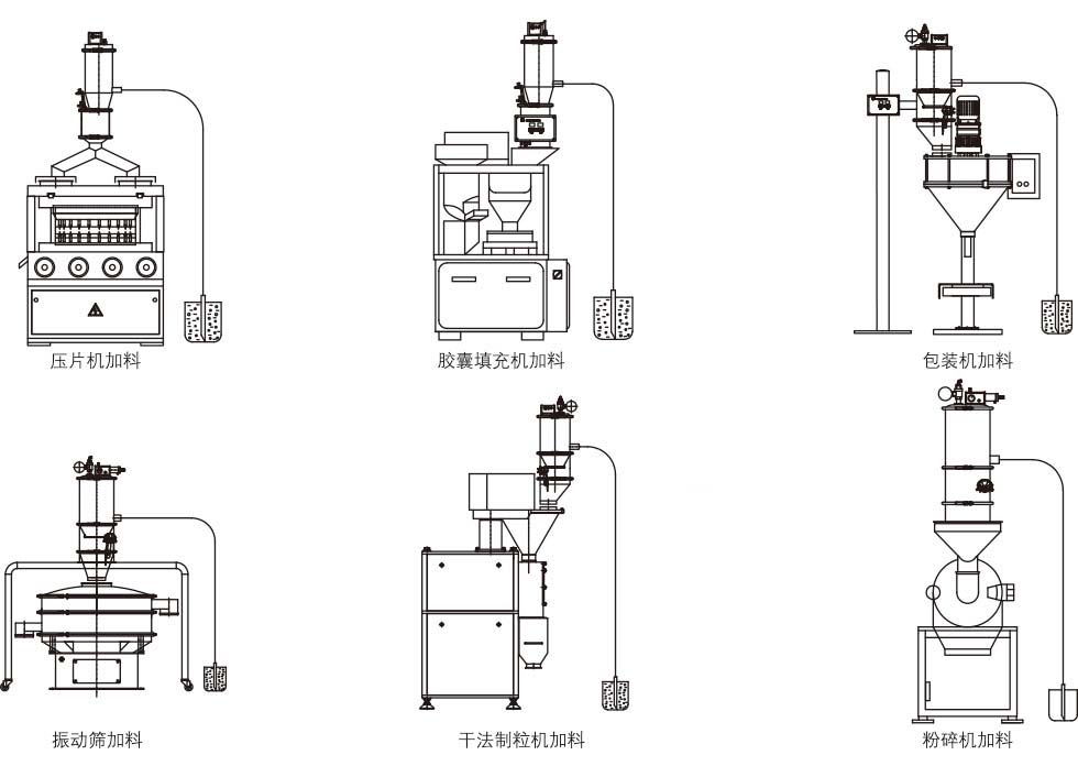 真空上料機是利用真空發生器作為真空源的一種真空輸送機,利用該真空加料機可以將物料從容器中直接送入混合機、反應器、料鬥、壓片機、包裝機、振動篩、整粒機、濕法製粒機、幹法製粒機和粉碎機中去。該機減輕了工人的勞動強度,杜*了粉塵汙染,保證生產符合“GMP”要求。